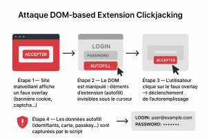 Contexte technique Lors de la conférence DEF CON 33, le chercheur en sécurité Marek Tóth a dévoilé une vulnérabilité redoutable affectant les extensions de gestionnaires de mots de passe : le DOM-based Extension Clickjacking, permettant d’exfiltrer des données sensibles par un simple clic utilisateur marektoth.comThe Hacker News. Qu’est-ce que le DOM-based Extension Clickjacking ? Contrairement… Lire la suite : DOM-based Extension Clickjacking : Le ciblage invisible des gestionnaires de mots de passe