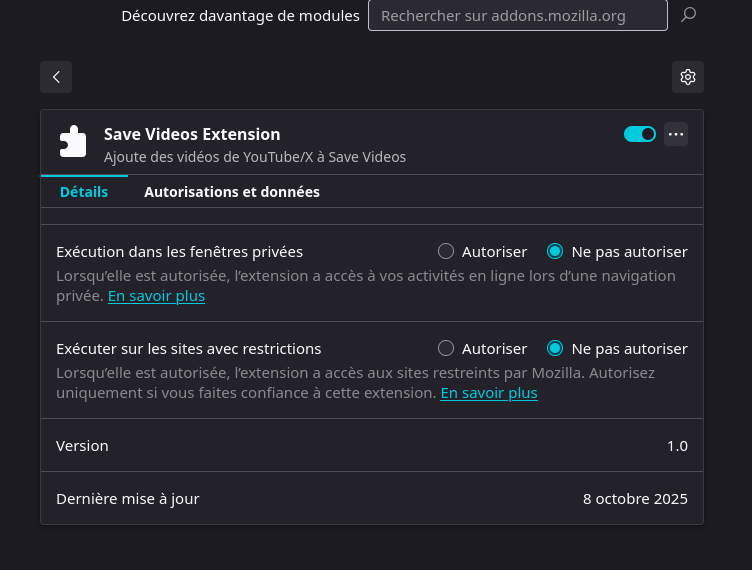 Extension pour firefox : qui permettra de capturer l’URL d’une vidéo sur YouTube ou X et de l’envoyer directement à ce serveur